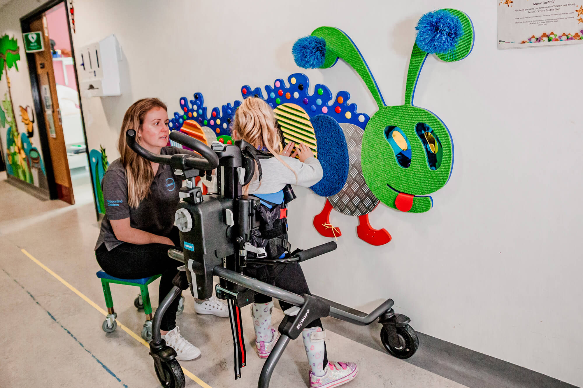 Tool-free adjustment of the prone angle and gross and fine height adjustment, together with the wide range of accessories, ensure therapists can optimise set-up to maximise participation and play.