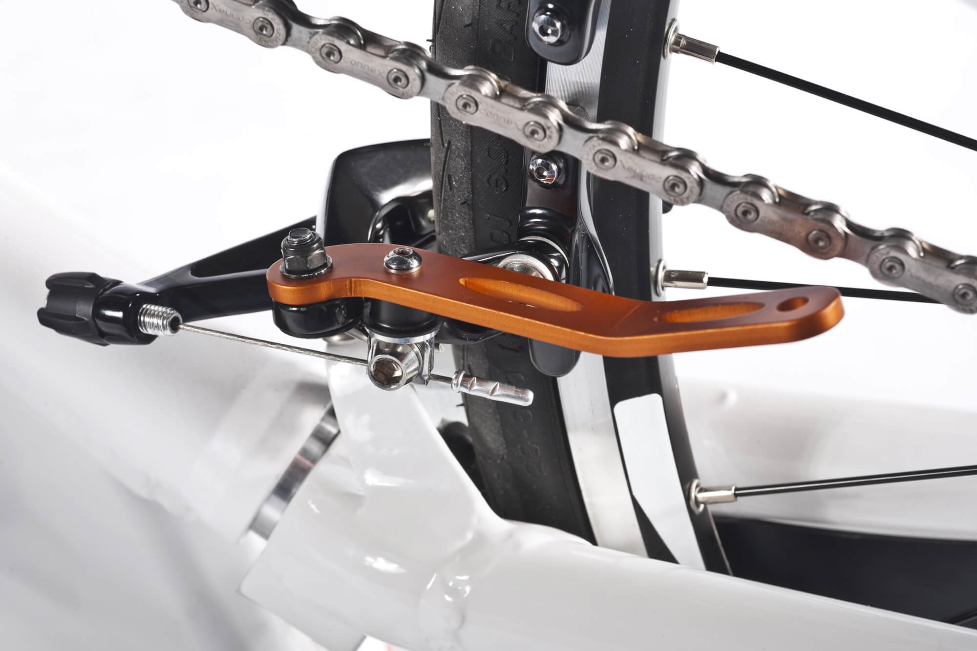 The parking brake secures the Shark RT hand bike from rolling forwards or backwards. This allows for safe transfer in and out of the hand bike.